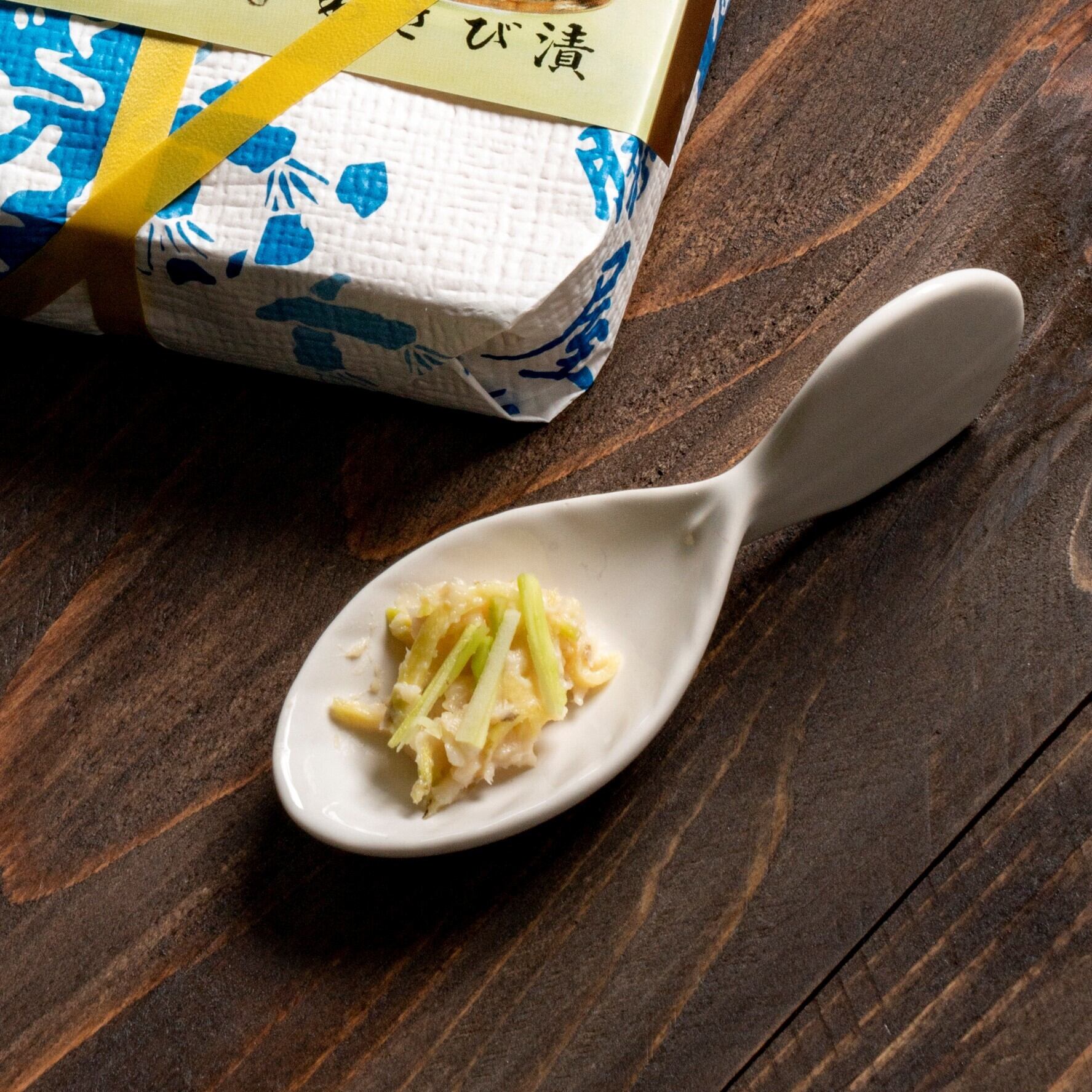 伝統的な製法で長きにわたってつくっているわさび漬けです。 安曇野産わさびの芋を使用しているので、他のわさび漬けにはない味わいです。